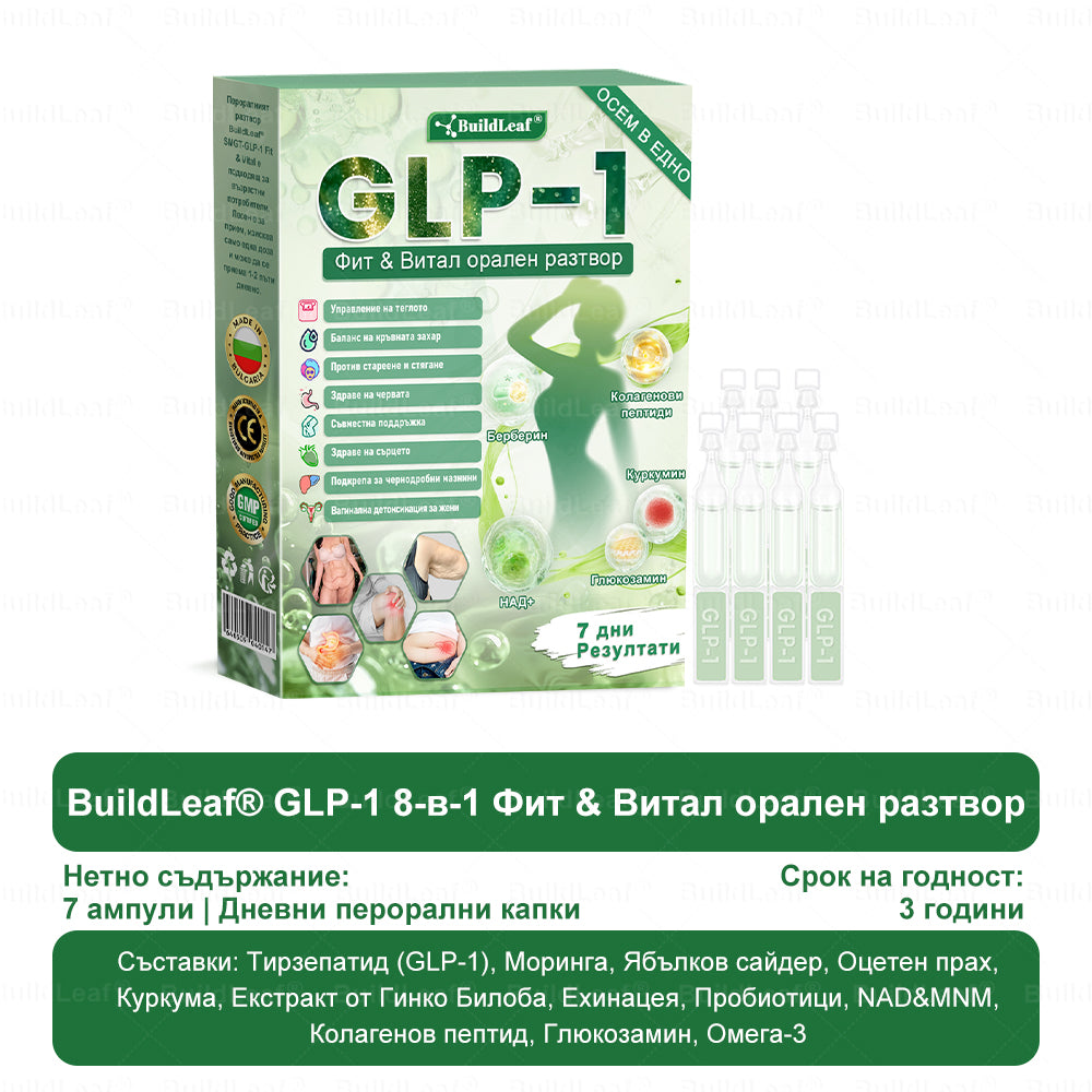 𝑩𝒖𝐢𝒍𝒅𝑳𝒆𝐚𝒇® GLP-1 8-в-1 Фит & Витал орален разтвор е разработен от екип от над 30 международни експерти по ендокринология и диабетология след повече от три години научни изследвания. Формулата комбинира Meglutide с мощни билкови съставки, които стимулират метаболизма, ускоряват изгарянето на мазнини и подпомагат здравето на храносмилателната и лимфната система. За да се подкрепи тялото по време на отслабване, е добавен и колагенов пептид, който активира естествения синтез на колаген, стяга кожата, изглажда фините линии и намалява отпускането, причинено от бърза загуба на тегло. Продуктът е одобрен от Българската агенция по лекарствата (BDA) за безопасност и ефективност и предлага научно обосновано решение за контрол на теглото и цялостно здраве.
